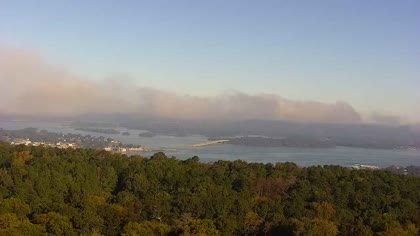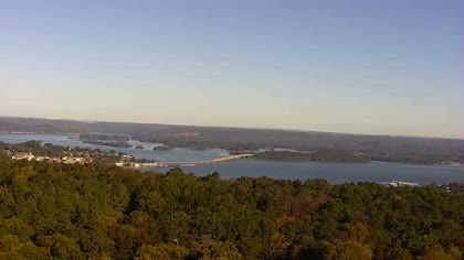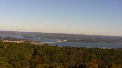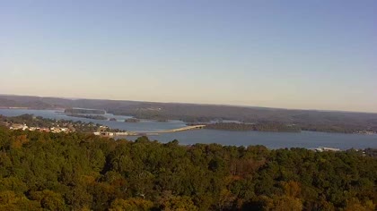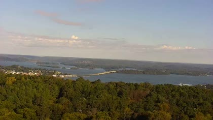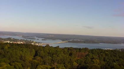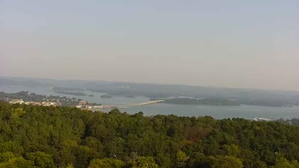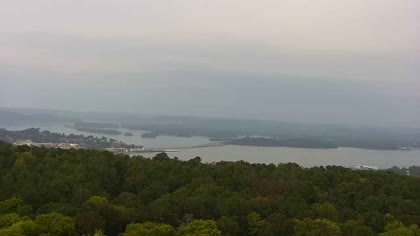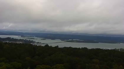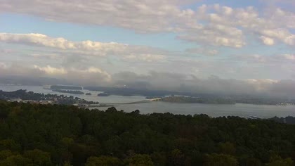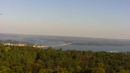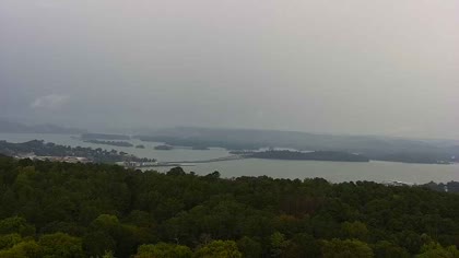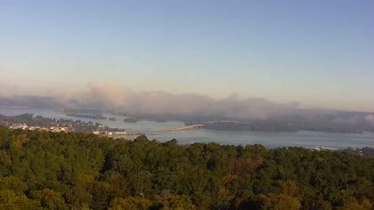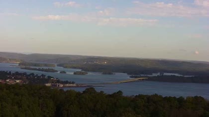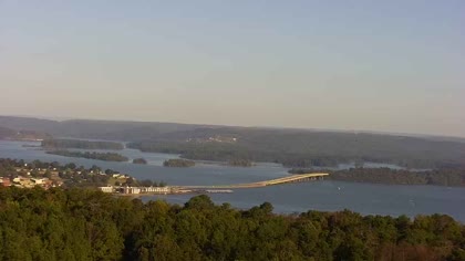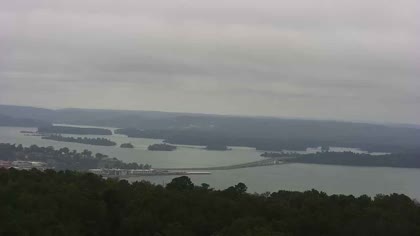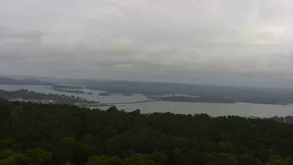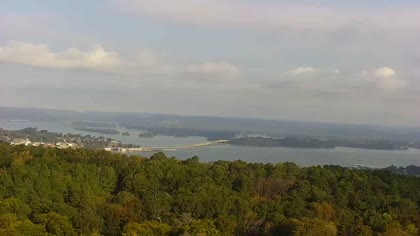 Widok w kierunku mostu Florida Short Route na jeziorze Guntersville Lake. Aktualny obraz z kamery dostępny na zewnętrznej stronie internetowej. Kliknij w miniaturkę, aby go zobaczyć. Kamera przypisana do kategorii Rzeki, jeziora.