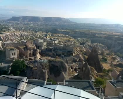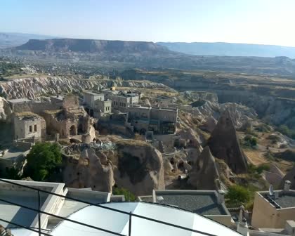 Widok na Dolinę Gołębi z hotelu Helike. Aktualny obraz z kamery dostępny na zewnętrznej stronie internetowej. Kliknij w miniaturkę, aby go zobaczyć. Kamera przypisana do kategorii Góry.