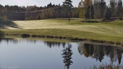 Kamera ukazuje na żywo staw przy torze 18 na polu golfowym w Pirkkala. Aktualny obraz z kamery dostępny na zewnętrznej stronie internetowej. Kliknij w miniaturkę, aby go zobaczyć. Kamera przypisana do kategorii Sport / stadiony.