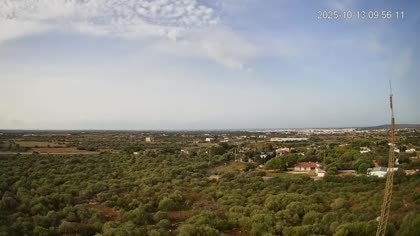 Widok w kierunku miasta Minorka z kamery zainstalowanej na maszcie telekomunikacyjnym przy ulicy Camí Caragol w gminie Ciutadella. Aktualny obraz z kamery dostępny na zewnętrznej stronie internetowej. Kliknij w miniaturkę, aby go zobaczyć. Kamera przypisana do kategorii Panoramy.